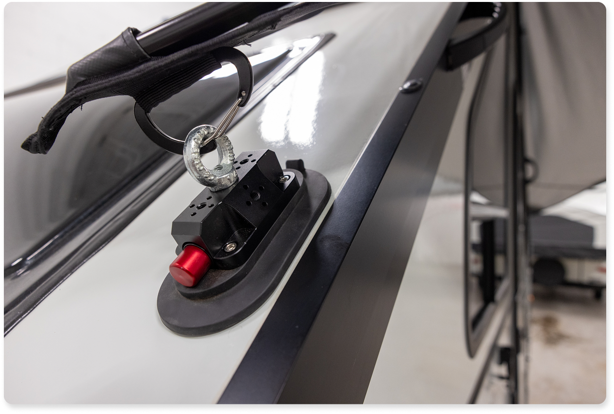 Weighing just 8lbs and packing small, this awning fits easily in your trailer’s storage compartments, with a roomy carry bag that has space for extra MoonAnchors and gear. -