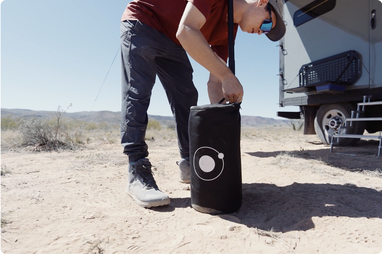 Made with heavy-duty fabric and tight stitching, each bag holds up to 30 lbs of ballast to keep your MoonShade grounded adventure after adventure.