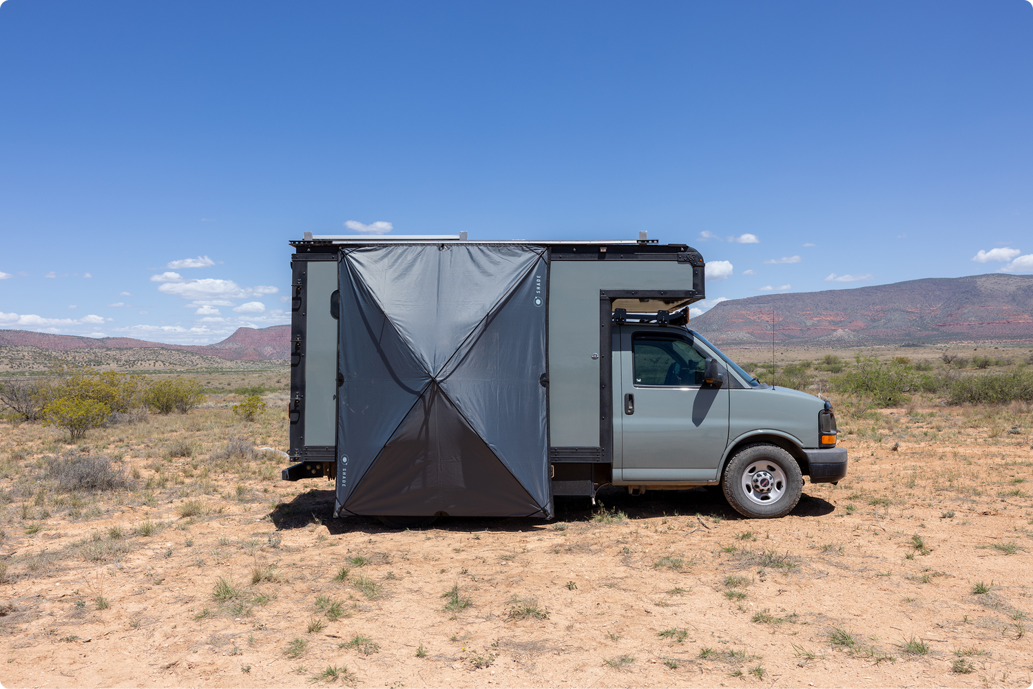 MoonShade RV’s setup, breakdown, and storage are quick and hassle-free. Even with a full 9ft x 7ft footprint, it tucks into the included carry bag, weighing only 8lbs.
