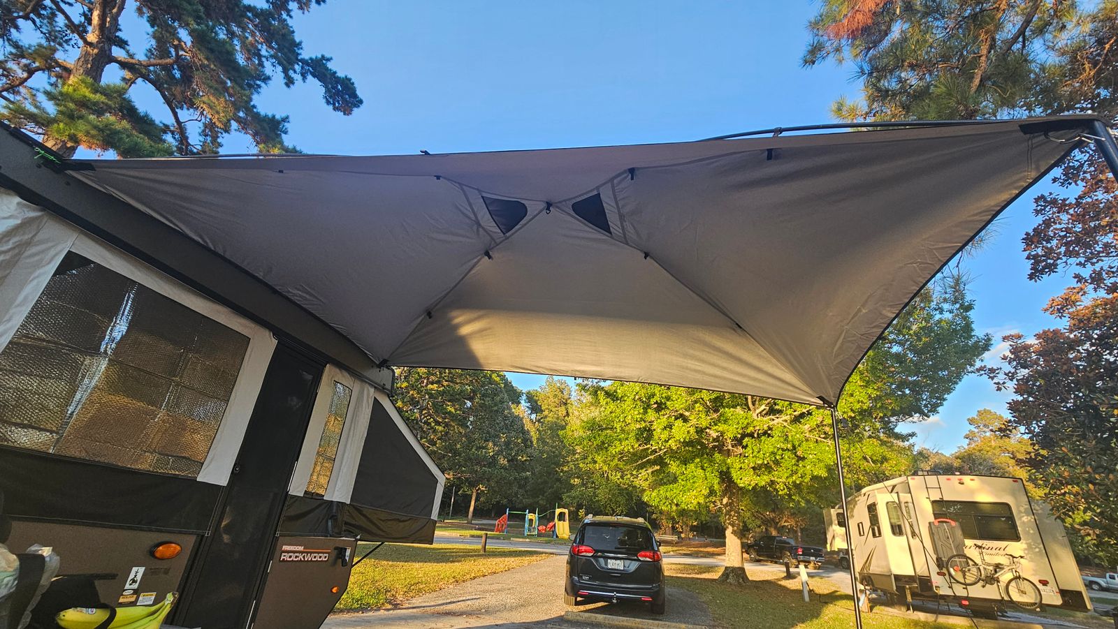 I finally love putting up my awning, even by myself! It was always a struggle to set up and put away the awning that comes with a pop up. Now my favorite thing to do is put up my Moonshade XL!
