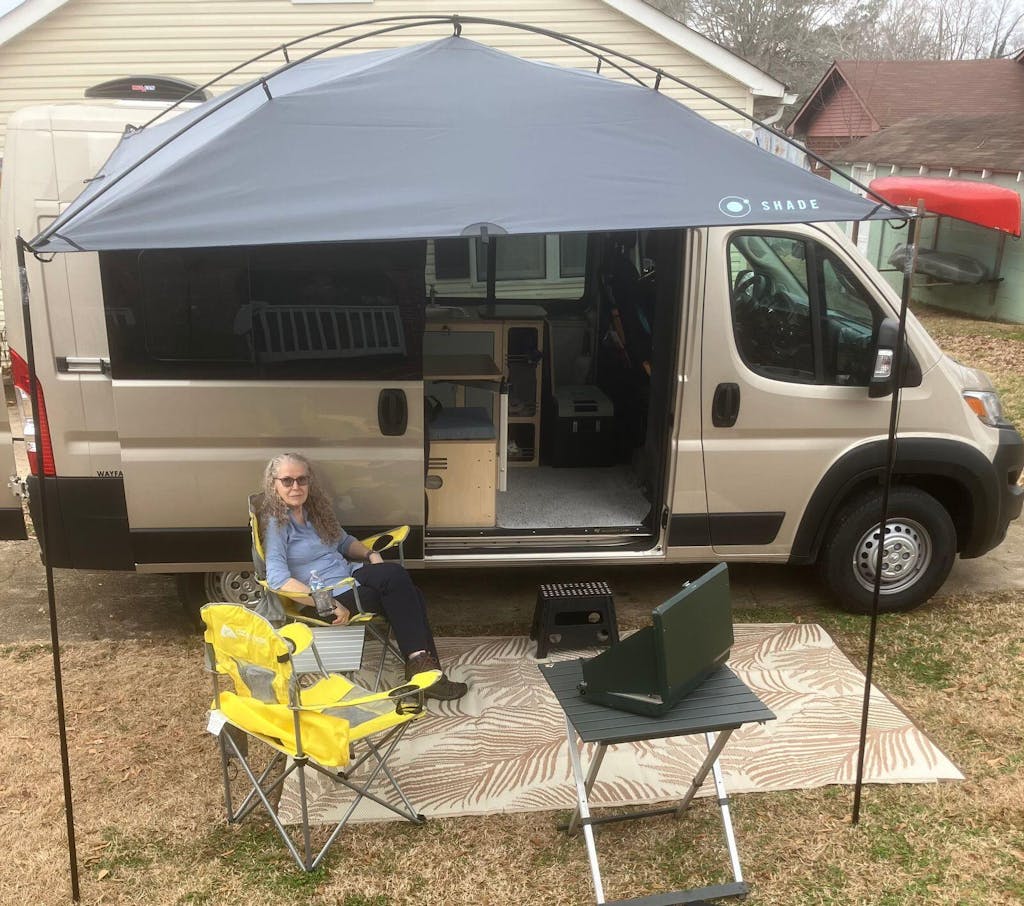 MoonShade covers a 9’x7’ site and packs down to about the size of a yoga mat.