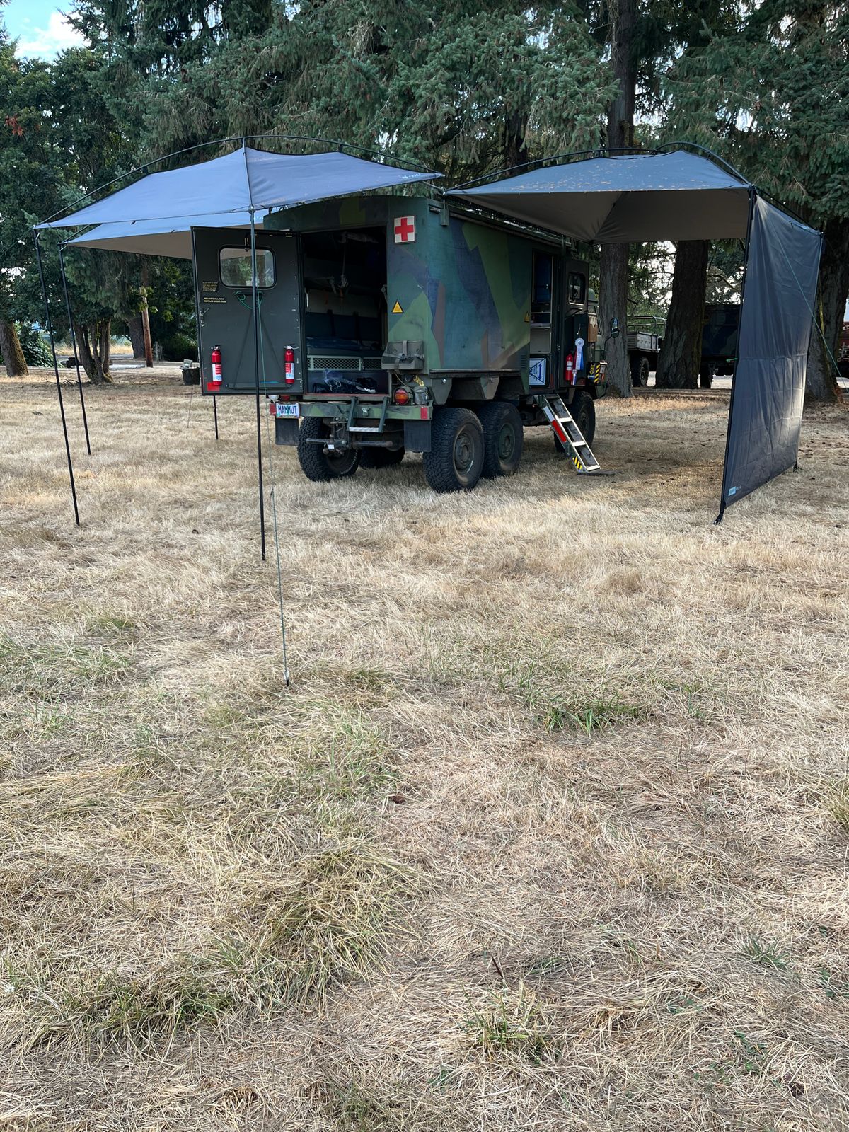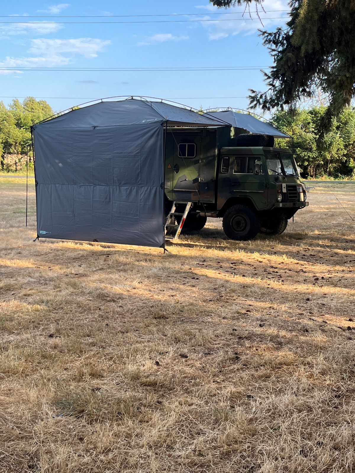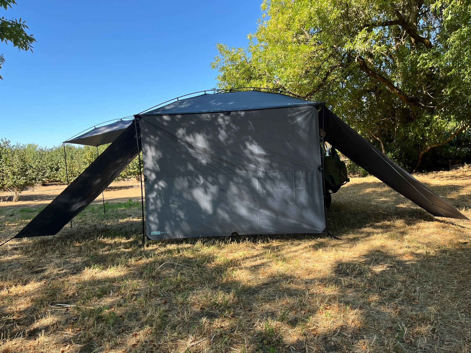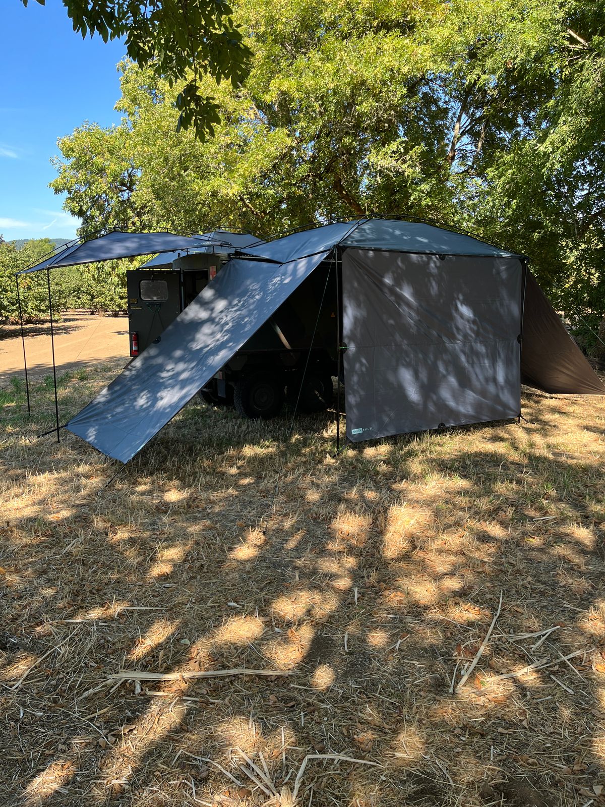 We have used the moon roof and the moon wall for multiple reasons… We have a pop-up that we use in parallel with the moon awning.. we have attached the moon wall to our pop-up to shelter us from neighbors who are too close, to make our electric bikes, a little, more obscure, into black late day, son.…